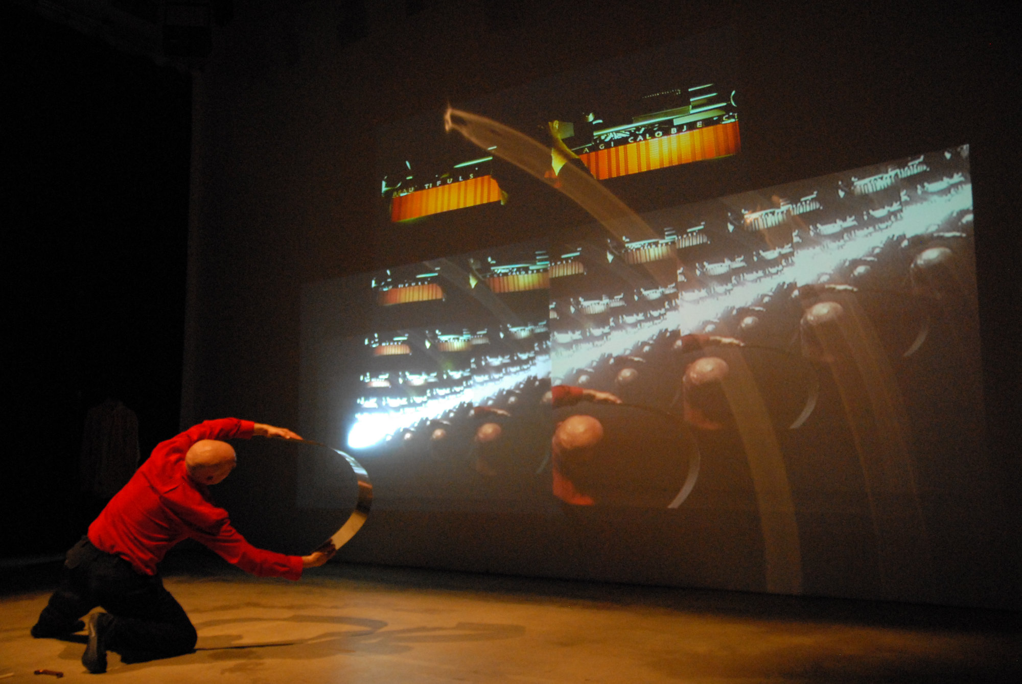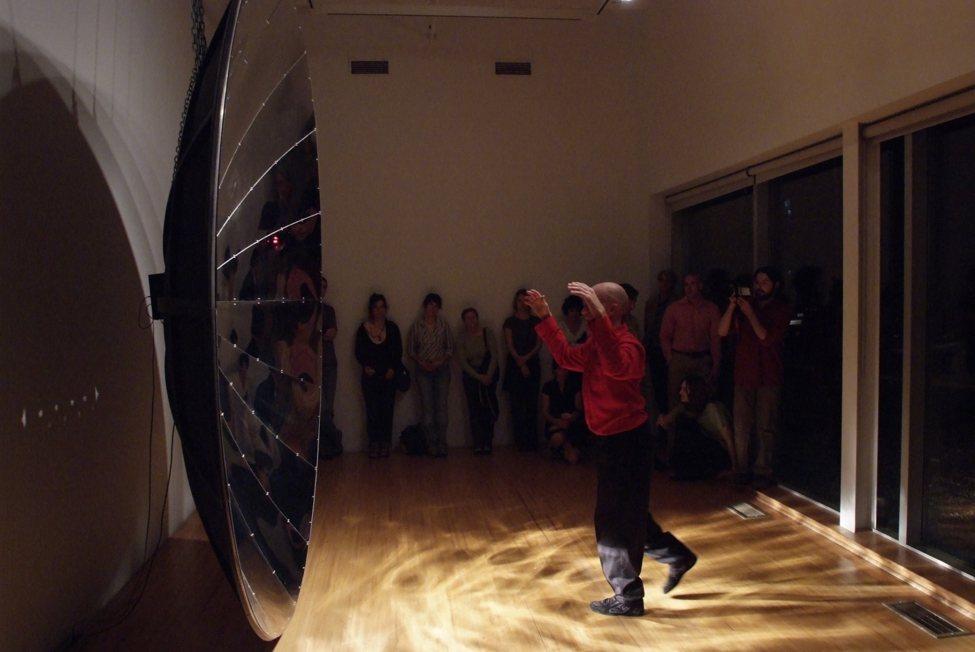 The performance is an extension of the Continuum exhibition at AXENÉO7. In his exhibition, Emig explores the nature of space in relation to the human body and the senses, using the reflection and refraction of light. In the performance, Emig and Eagan will experiment with the transposition of these ideas to sound, with the integration of video, light and movement.